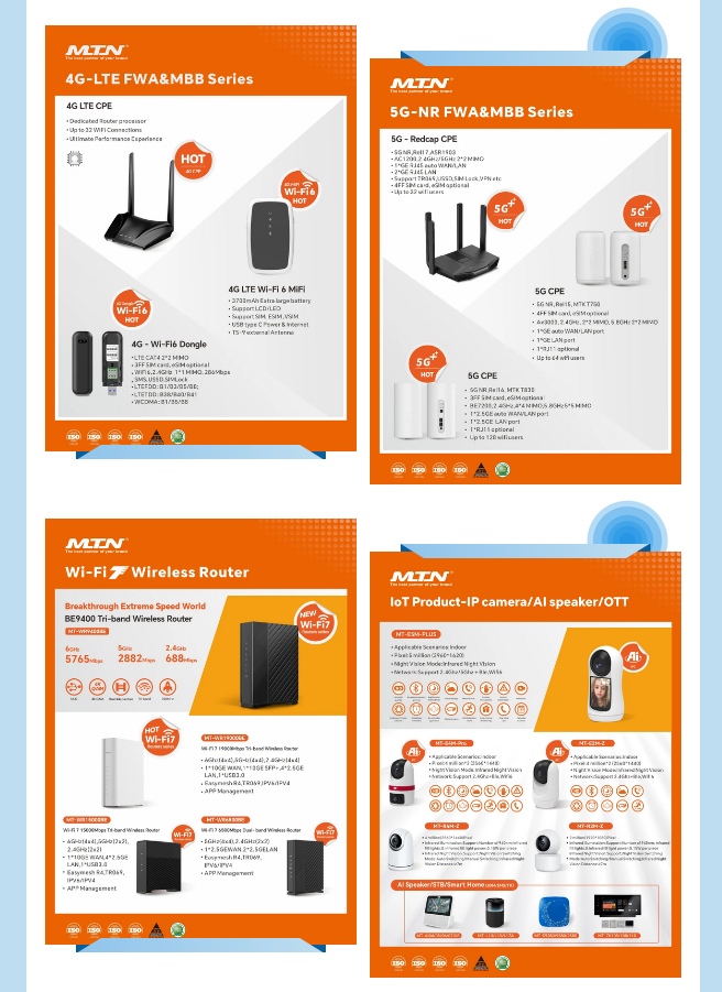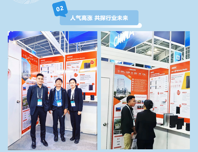 本次展會,邁騰電子攜5G CPE、交換機、AI-IPC、Wifi7、云網(wǎng)絡產(chǎn)品等最新網(wǎng)通科技成果及應用登場。每一款產(chǎn)品都凝聚著邁騰電子研發(fā)團隊的智慧與心血,代表著行業(yè)的領先產(chǎn)品及應用。