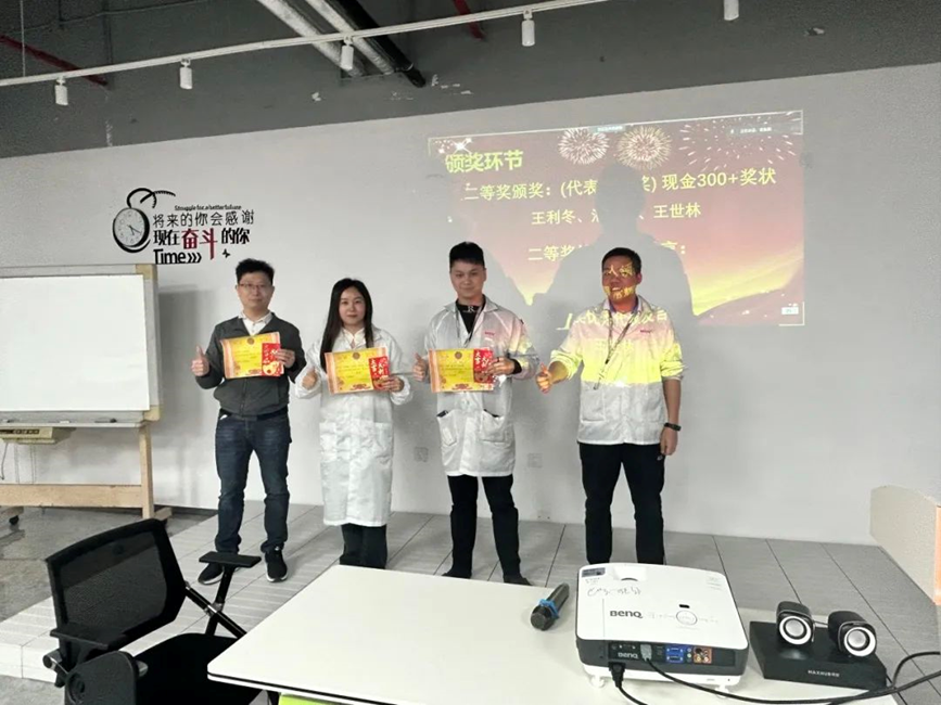總經(jīng)理黃總對(duì)Q4季度獲獎(jiǎng)員工表示祝賀和感謝,并表示未來將繼續(xù)加大對(duì)提案改善工作的投入和支持,為員工提供更多的培訓(xùn)和學(xué)習(xí)機(jī)會(huì)。同時(shí),工廠也將不斷完善提案改善機(jī)制,鼓勵(lì)員工提出更多富有創(chuàng)意和實(shí)踐價(jià)值的提案,共同推動(dòng)華南工廠不斷邁向新的高度。