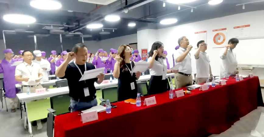 在莊嚴(yán)的氛圍中,班組長們整齊列隊,緊握右拳,高聲宣誓,鏗鏘有力的誓言回蕩在會場,展現(xiàn)了班組長們堅定的決心和信念。