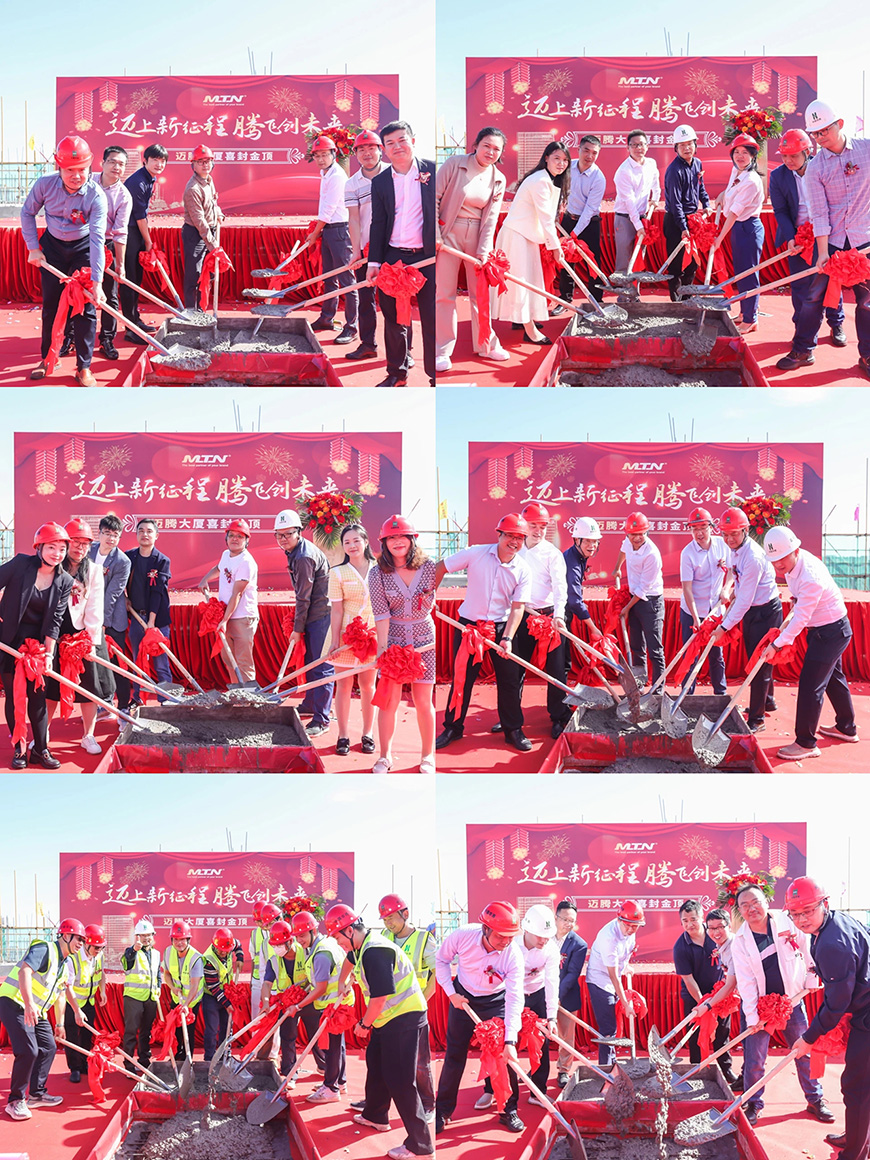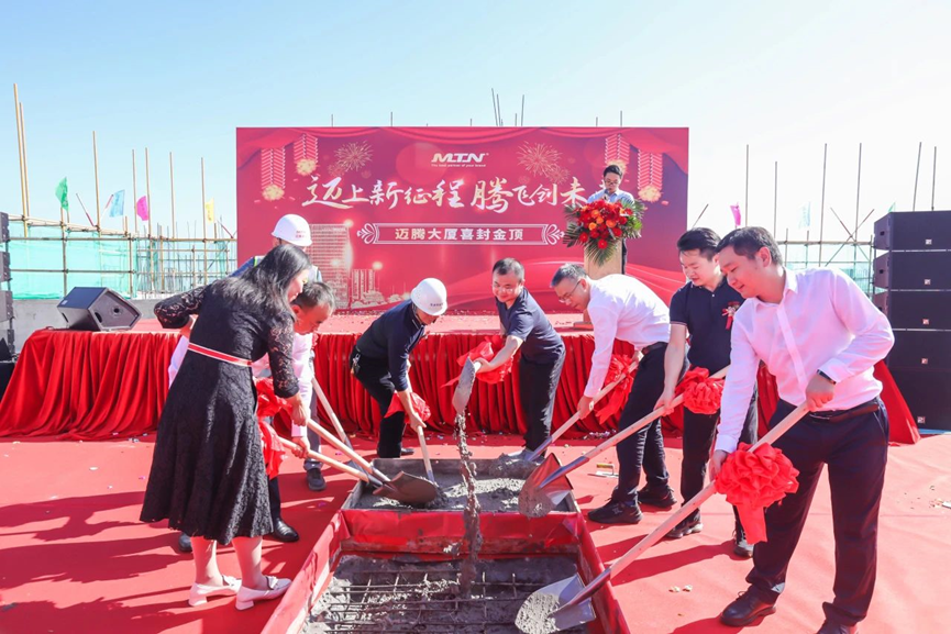 各位領(lǐng)導(dǎo),金鏟齊開,共同完成澆筑最后一方水泥,邁騰大廈正式封頂,這也標(biāo)志著公司即將迎來新的發(fā)展階段。