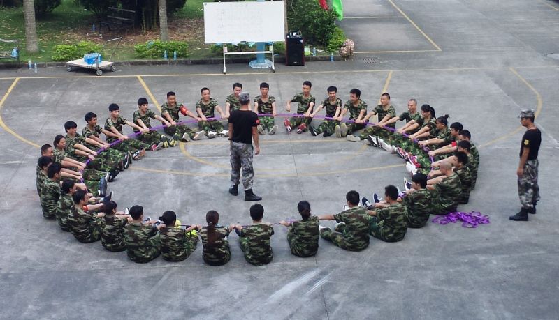 第二天我們迎來了我們的“老朋友”百年特訓(xùn)營(yíng)的教官,展開短暫的一天拓展培訓(xùn),至此學(xué)員之間多了一種關(guān)系,那便是“戰(zhàn)友”!短短的一天拓展培訓(xùn)中,戰(zhàn)友們體驗(yàn)到了“組建團(tuán)隊(duì)”、“創(chuàng)新贏家”、“共同進(jìn)退”、“解救人質(zhì)”四項(xiàng)團(tuán)隊(duì)任務(wù),每個(gè)任務(wù)都是對(duì)戰(zhàn)友間信任度、團(tuán)隊(duì)協(xié)作能力,耐力的挑戰(zhàn),但是一個(gè)個(gè)任務(wù)下來戰(zhàn)友們都出色的完成了任務(wù)。在“解救人質(zhì)”的任務(wù)中36位戰(zhàn)友挑戰(zhàn)了3500圈的勝利圈,有戰(zhàn)友在結(jié)束后說,“自己真的快不行了,最后都是靠毅力堅(jiān)持下來的”,有些戰(zhàn)友甚至因此磨破了皮!“一開始就是3500圈,不達(dá)到不放手,即使很痛苦但是咬咬牙就是挺過去了,如果失敗了就是個(gè)大笑話,不要讓這成為笑話,要讓大家為之崇拜和認(rèn)可。”有為戰(zhàn)友在分享總結(jié)中這樣說道。