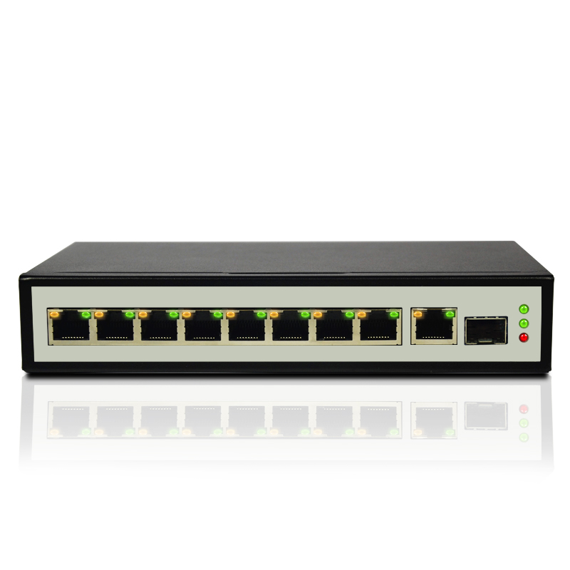 | 固定端口 | 8個10/100M和1個10/100/1000M RJ-45 MDI / MDI-X端口,1個千兆SFP光口 |