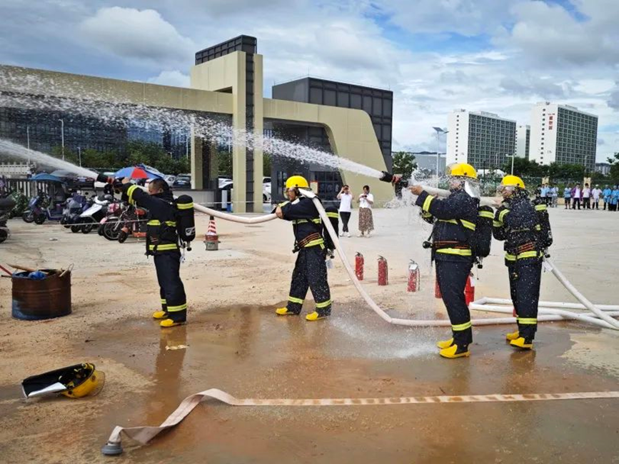 公司消防隊員迅速趕到現(xiàn)場,展示了消防栓水槍的正確使用方法,并進行了現(xiàn)場撲救演示。