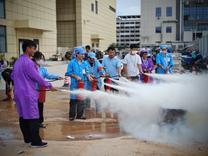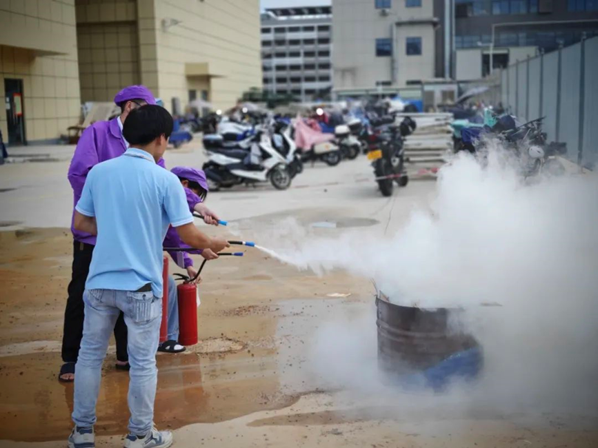員工們積極參與現(xiàn)場滅火的實地演練,做到切身掌握如何使用滅火器材。