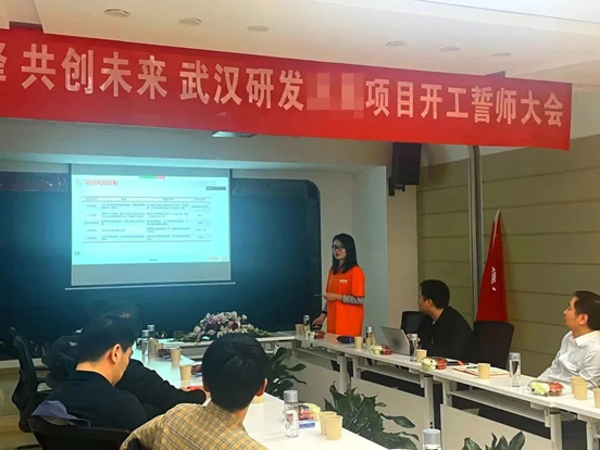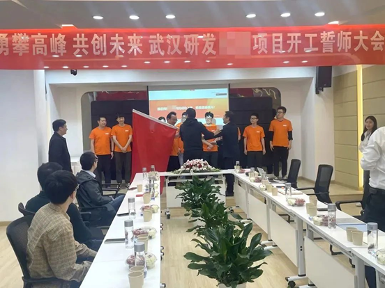 黃總與客戶(hù)代表向武漢研發(fā)團(tuán)隊(duì)授戰(zhàn)旗